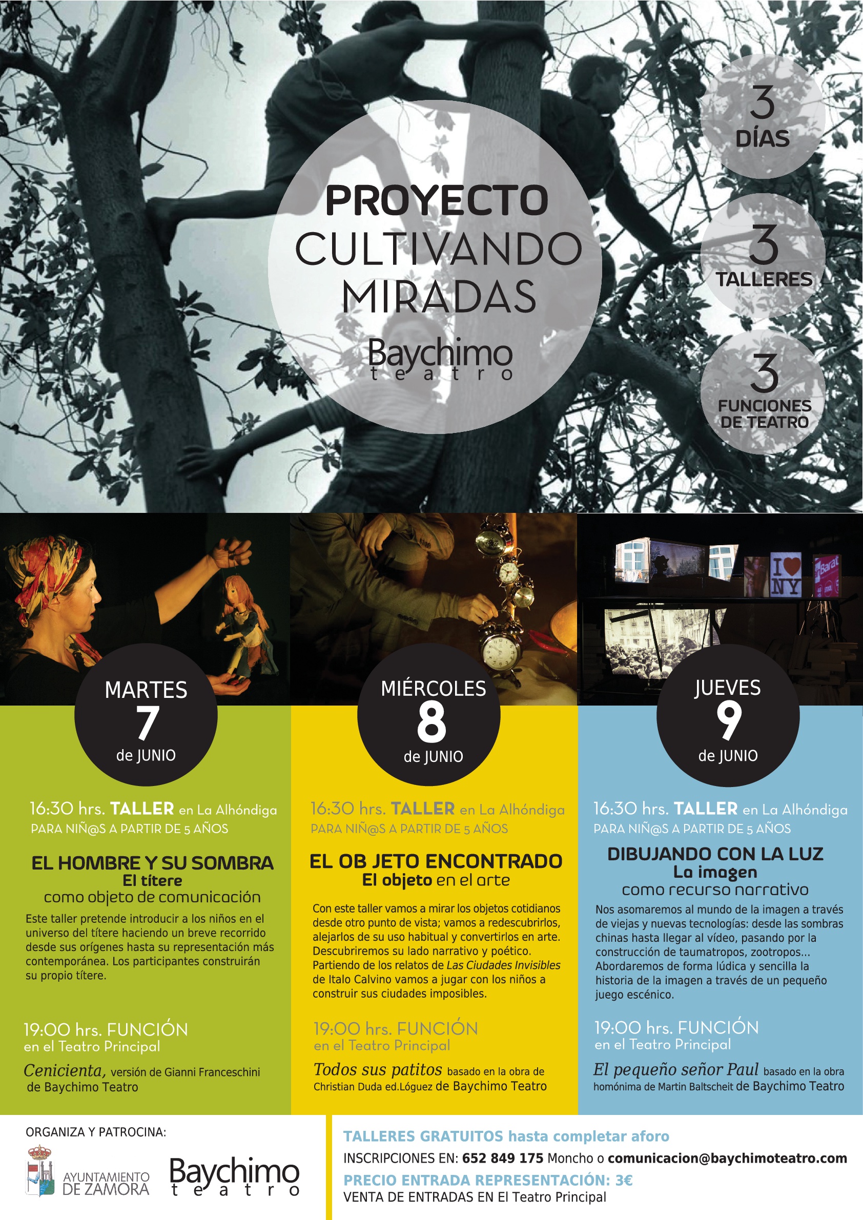 La primera edición del Cultivando Miradas no fué la primera edición realmente… presentamos el proyecto y lo pusimos a prueba con niños, niñas y adultos acompañados. La estructura era parecida, talleres en los que compartíamos a través de muchos juegos y manualidades información relativa a los espectáculos que verían después. La falta de recursos hizo que los espectáculos fueran los de Baychimo Teatro, organizadores del proyecto.